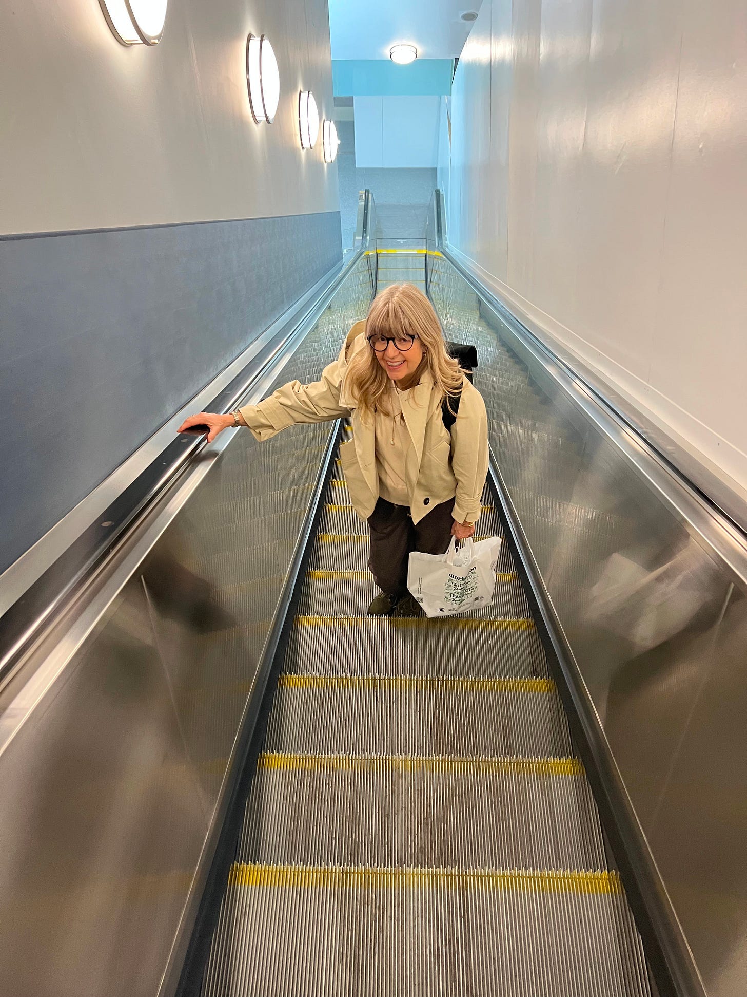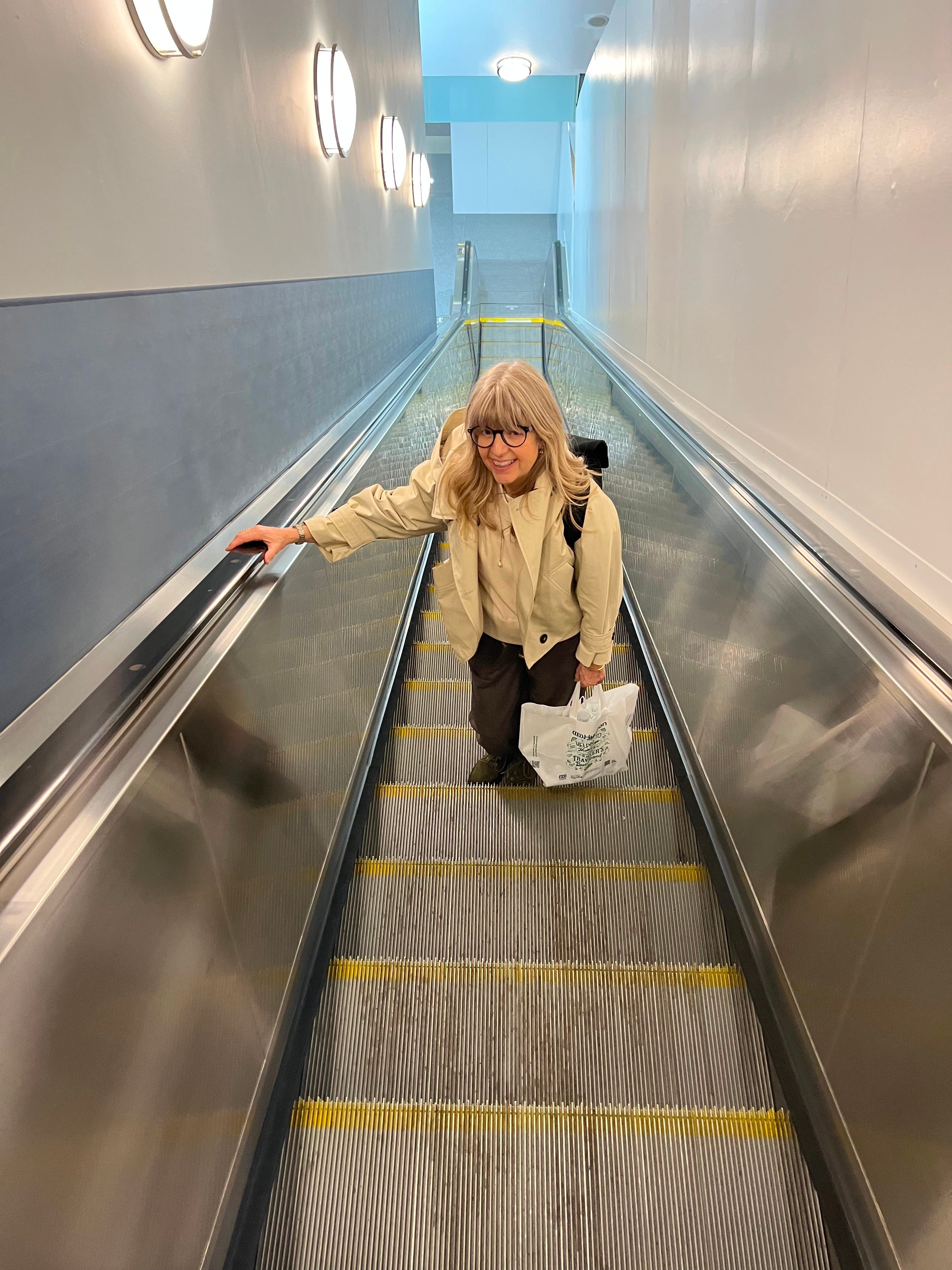 There are never enough pictures of the two of us together. One of us has to hold the camera, I suppose, but always there are these. On an escalator at JFK, the travel agent who made the celebration of my 60th birthday possible.