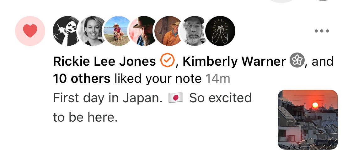 Happy bday and welcome back. Japan is such a special place. All the feels. (PS that’s likely not a real account. I had “George Saunders” and someone else famous I don’t remember now. . .)