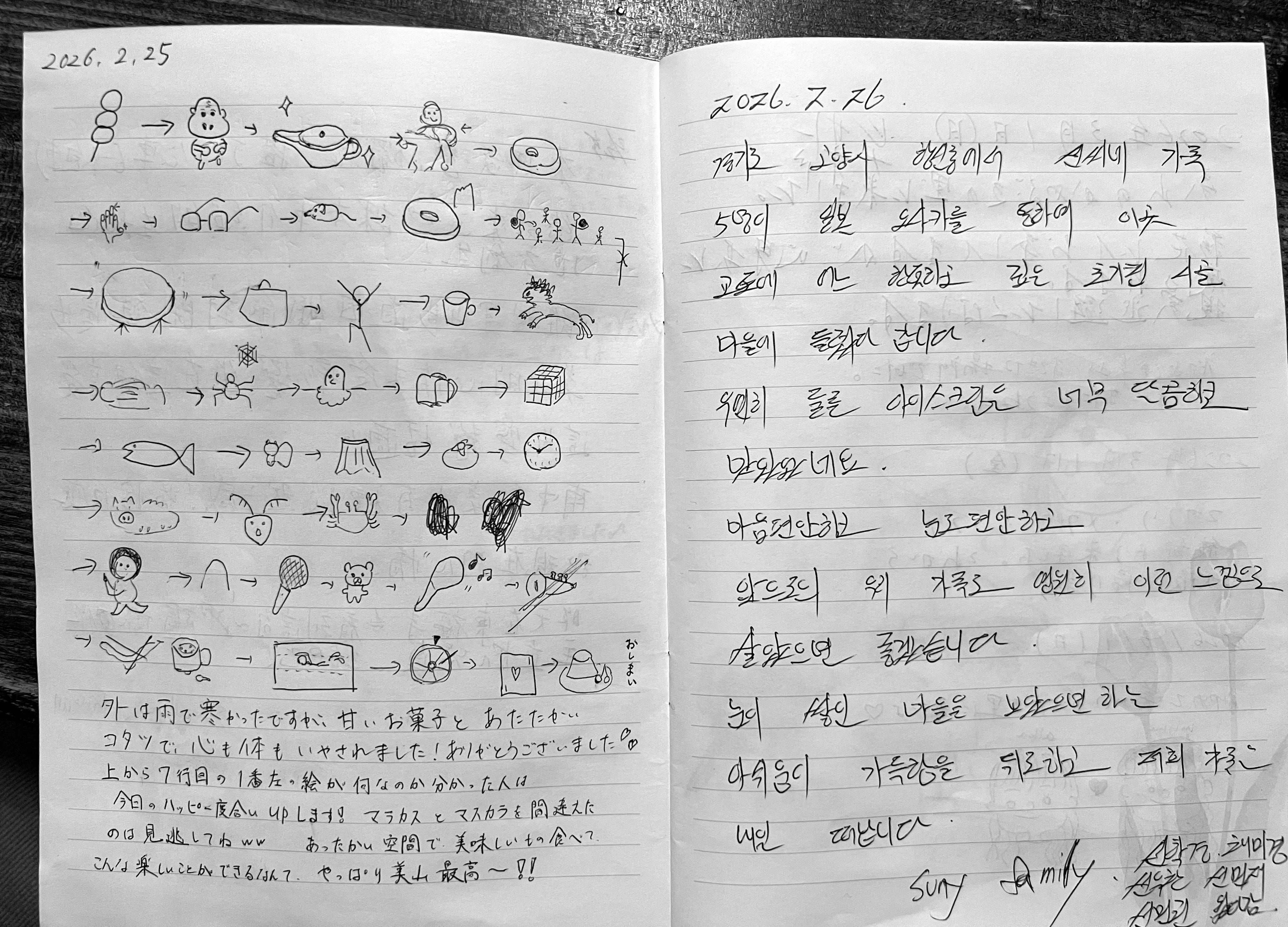 A notebook left for scribblers on a restaurant table. I sat on a tatami mat and stared into another world. How to put it? It is like people from across the world on an island somewhere invented their own culture.